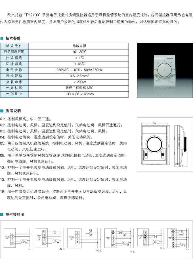 “TH2100”系列电子拨盘式房间温控器