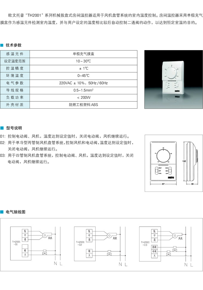 “TH2001”系列机械拨盘式房间温控器